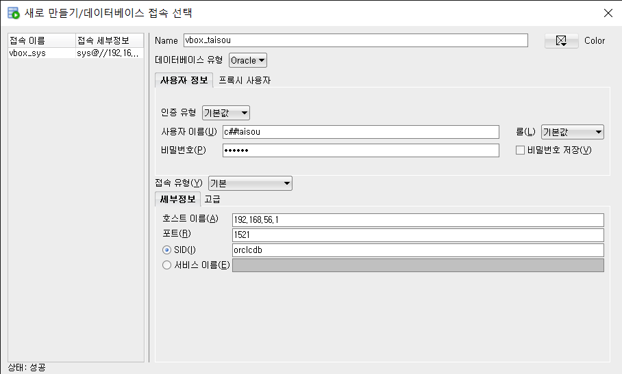 sys 로 접속해서 유저 생성을 해보겠습니다~ ( 롤 이 SYSDBA 로 해야 합니다. )