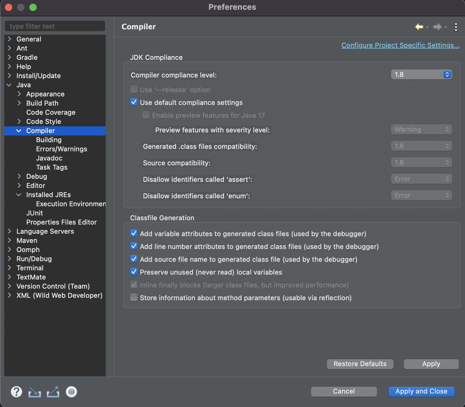 Compiler compilance level 도 1.8 로 맞춰준다.
