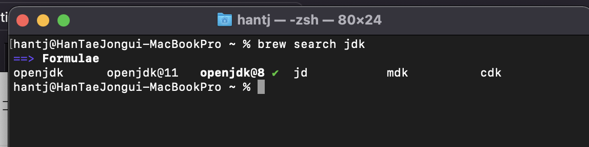 brew search jdk 로 검색 후, 리스트 중 원하는 버전으로 설치하면 된다.