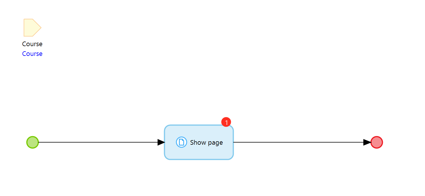 도구 상자에서 페이지 표시 활동을 찾아 시작 이벤트와 종료 이벤트 사이의 흐름에 배치합니다.