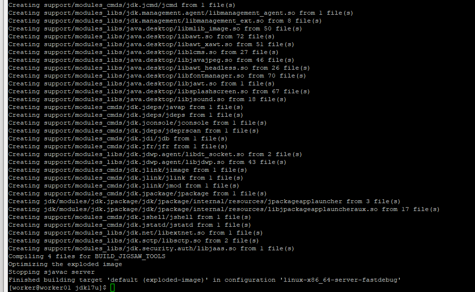 완료되면 아래와 같이, 소스 밑에 build/{설정이름}/jdk/에 저장되어 있다.
